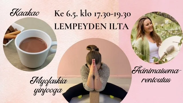Ilta alkaa kaakaomeditaatiolla, jonka jälkeen syvennymme myofaskia yinjoogaharjoituksen pariin ja päätämme illan äänimaisemarentoutukseen.